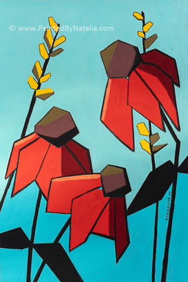 This vibrant series celebrates the striking presence of coneflowers—also known as Echinacea—translating their unique shape into graphic, stylized compositions.